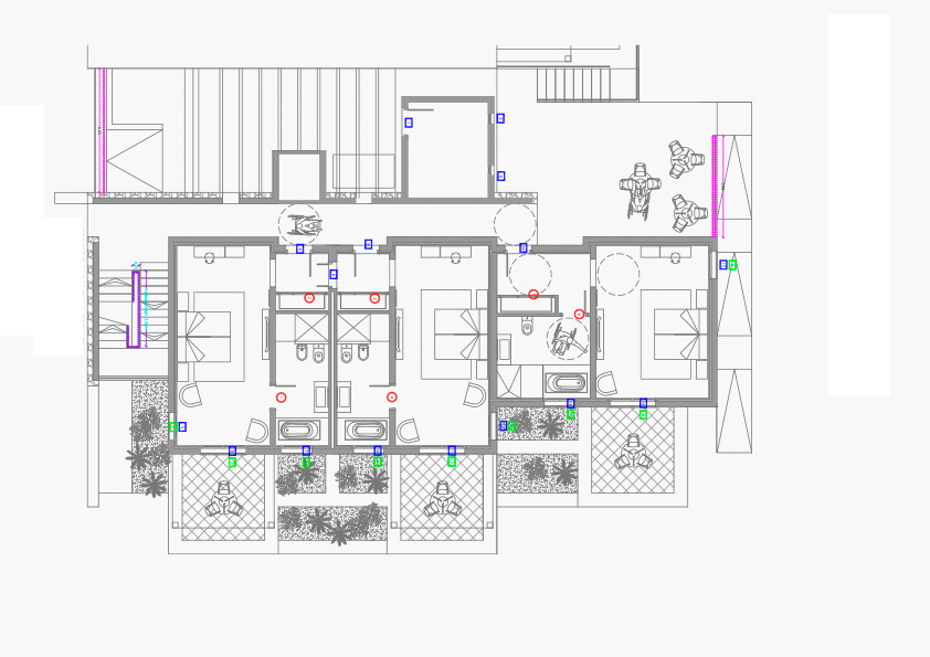 Construcción de un edificio de cinco habitaciones para uso como hotel rural. Habitaciones con ventanales de madera de doble cristal y un baño completo, que incluye, bañera hidromasaje y ducha de obra en suite. Se completan con un escritorio, aire acondicionado, caja fuerte, electrodomésticos como (secador de pelo, televisores, DVD y frigoríficos).